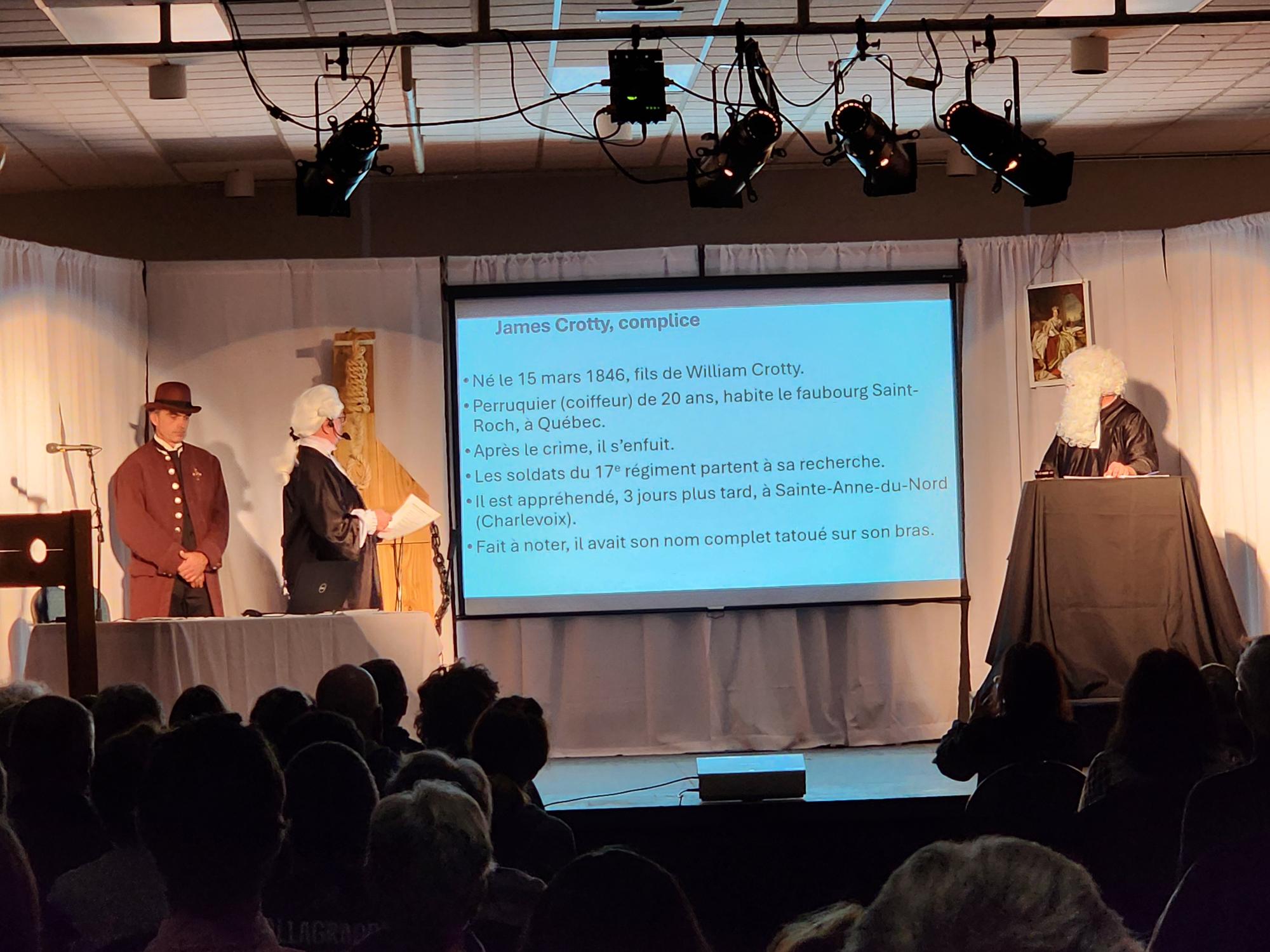 Conférencier M. Daniel Stewart. Il raconte histoire de 5 meurtres impliquant des citoyens de Sainte-Catherine de Fossambault au 19e siècle. Le tout ponctué de personnages historiques qui viennent agrémenter l’histoire. La conférence a été présentée deux fois: