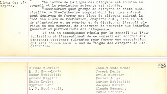 - 2 (1931) : Assermentation de Joseph Cantin comme 17e maire de Ste-Catherine. Il sera en fonction jusqu’en 1937.